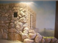 بالإضافة لتقنيات أخرى كتصميم أعمدة واقواس حجرية بتقنيات مختلفة كقضبان وحديد واسمنت لتعطي شكل الحجر وجماليته